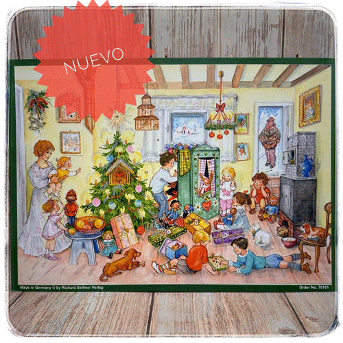 Calendario de Adviento, con purpurina: REGALOS DE NAVIDAD 26,5 x 35 cm. 24 ventanitas. (Grande)