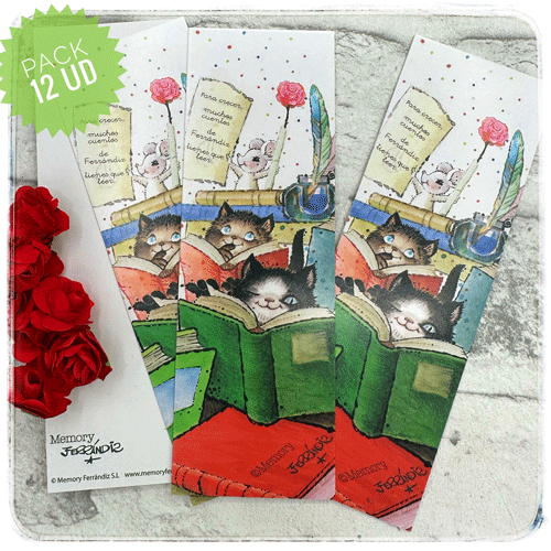 • Puntos de libro-marcapáginas. pack 12 uds. GATOS Y LIBROS  Ferrándiz
