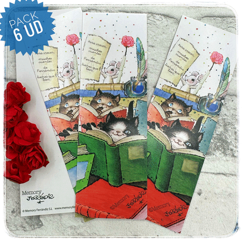 Puntos de libro-marcapáginas. pack 6 uds. GATOS Y LIBROS Diseñado por Memory Ferrándiz