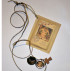 VIEIRA bronze medal with wooden cross APOSTLE SANTIAGO, Ferrándiz. 2 cm, leather strap. Vieira 2 cm in diameter with seal and image of the Apostle inside. Wooden cross 2 cm x 1.5 CXM. Mini card to personalize the gift.