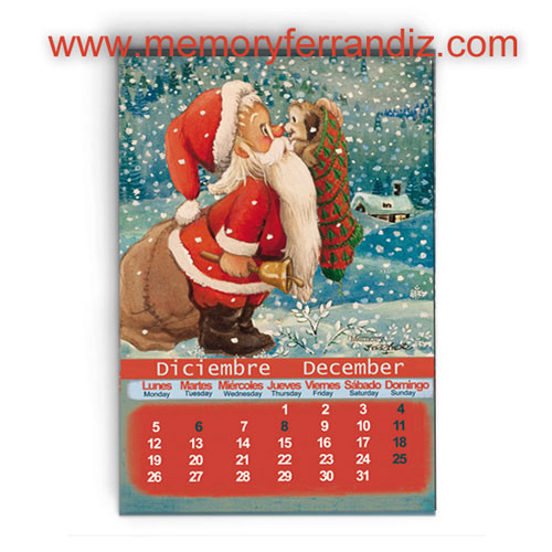 Imán nevera rectangular PAPÁ NOEL CALENDARIO, Ferrándiz, 53 x 78 mm, acabado brillante, Memory Ferrándiz