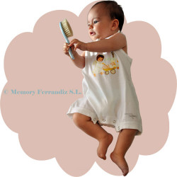 Mono body rosa "Angelito paseando bebé". Color blanco Algodón. Punto liso 100 % Disponible en tallas 6 meses y 12 meses