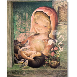 Tarjeta "Virgen Provenzal"+ sobre color dorado Medidas: 15 x 19 cm Papel mate retro. CH 1860-1